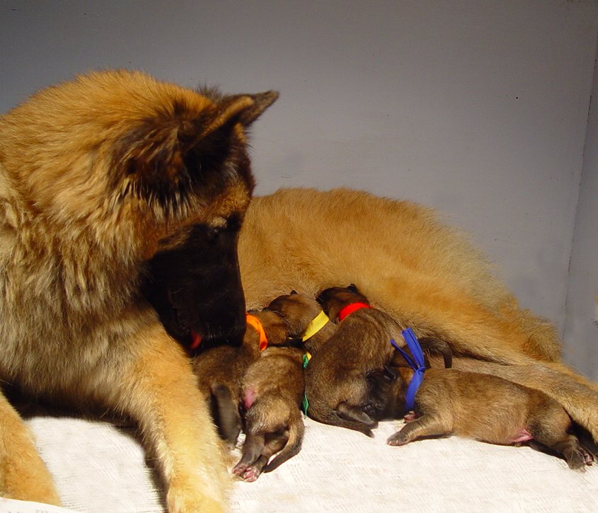 On 24-02-2008 our Groenendael Shiva v't Guitpad was mated with Quinto-Rival de Bruine Buck. On 26-4-2008 Shiva give birth to her first litter. There were 4 males and 4 females born.